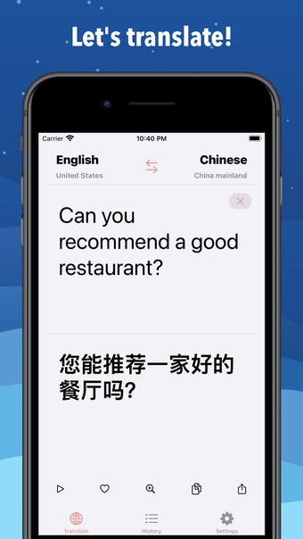بمجرد النقر، يمكنك نسخ نصك وترجمته إلى أي من اللغات المدعومة. وإذا كنت ترغب في الاستماع إلى الترجمة، فقط استمع إلى التطبيق وهو يقرأها لك. بالإضافة إلى ذلك، يحتفظ تطبيق الترجمة السهلة بسجل لترجماتك السابقة، مما يجعل من السهل الرجوع إليها.